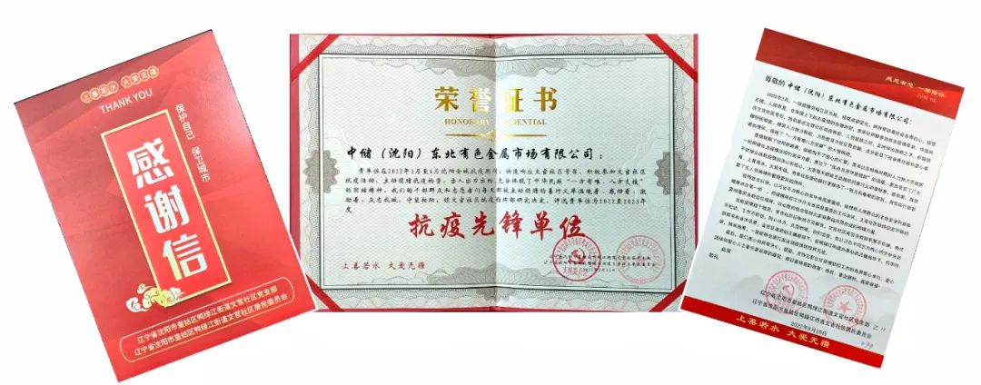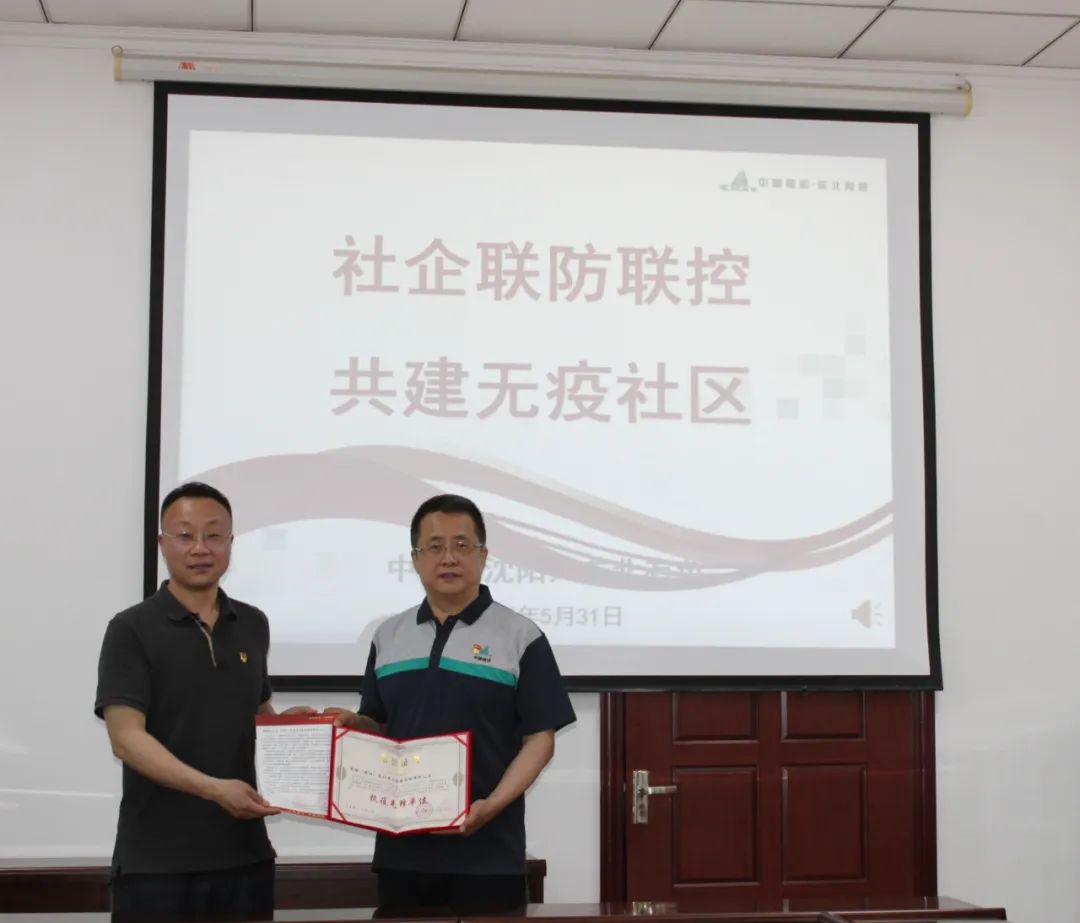 2022531皇姑区鸭绿江街道文官社区赵宇书记来访公司,授赠中储东北有色2022年度抗疫先单位荣誉证书,表彰公司在疫情防控期间,全面配合街道社区做好抗击疫情工作,以实际行动融入共建共防体系,诠释志愿服务精神,彰显企责任担当。