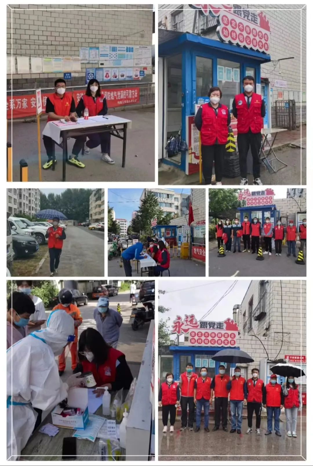 党有号召,“抗疫有我”。这些勇敢的志愿者,带着支部“做好防护、做好服务、展现形象”的嘱托,顶着“秋老虎”的炎热,认真、耐心提醒群众出小区前做好核酸、扫码、测温,与社区工作者紧密协作。尤其是9月4日,一场秋雨不约而至,给正在紧锣密鼓进行的防疫工作带来了诸多不便,面对降雨天气带来的挑战,志愿者们依然坚守在岗位上,并没有按下防疫工作的暂停键,用一抹“中国红”“志愿红”展现了国资央企“由党而建、听党指挥、为国分忧、为民奉献”的先锋形象。