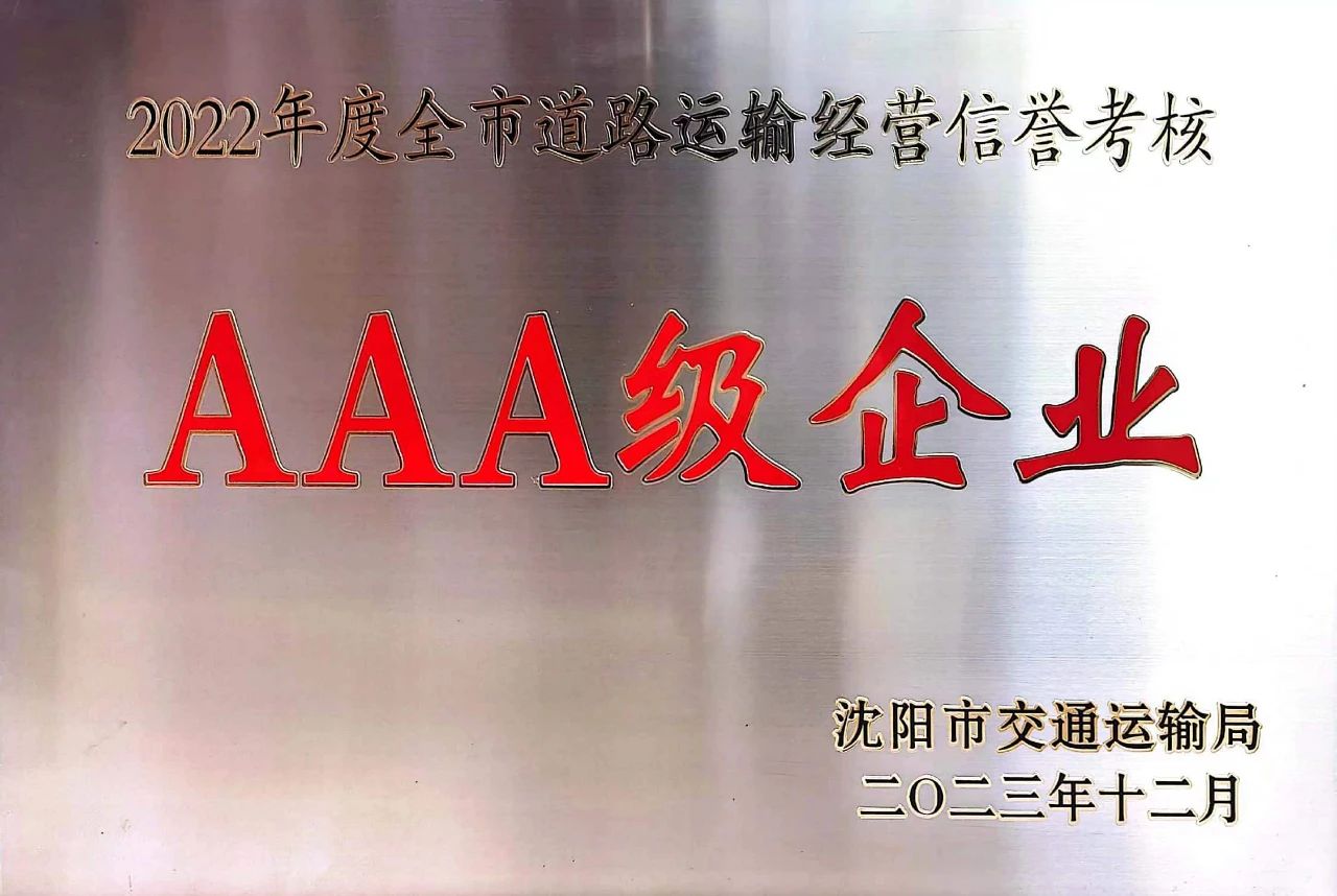 根据沈阳市道路运输信誉考核工作安排及《辽宁省道路运输经营信誉监督考核办法》等相关要求,在全市道路货运企业年度经营信誉考核我单位获得“全市道路运输经营信誉考核AAA级企业”称号。